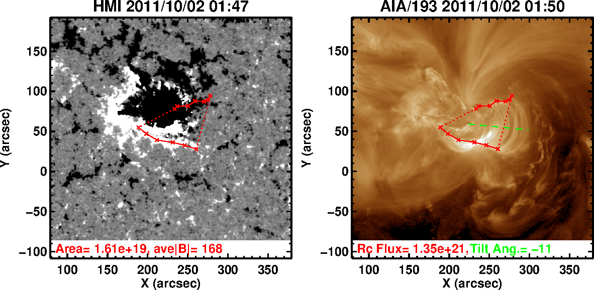 Ave. |B| [g] | Reconnection Flux [Mx] |